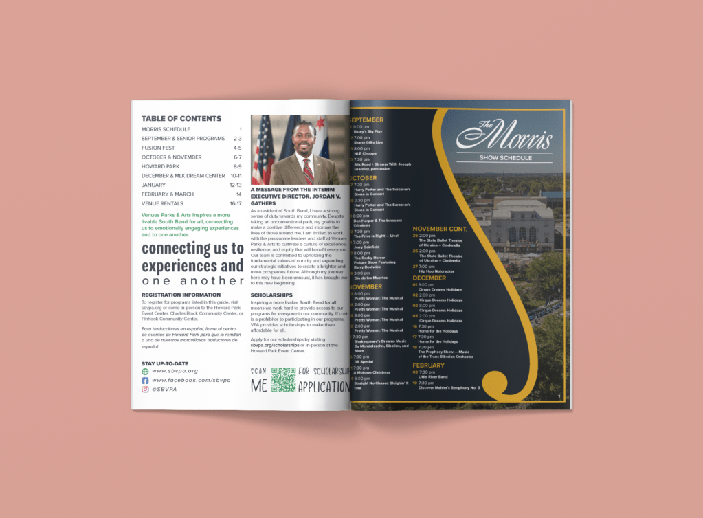 VPA’s most recent Activity Guide aimed to present all programs and activities chronologically. I worked to achieve this by creating a calendar feel with the months of the year. To add an element of fun, I played with the size and shapes of each month’s letters.