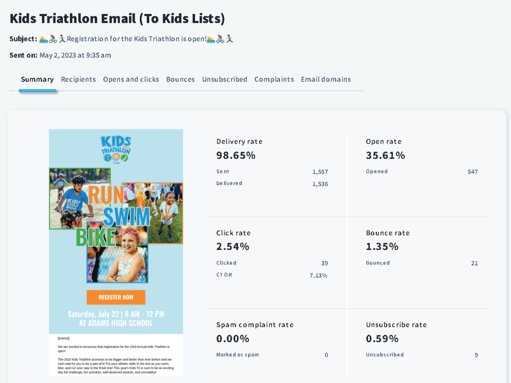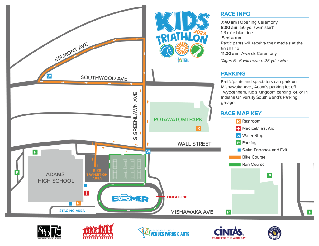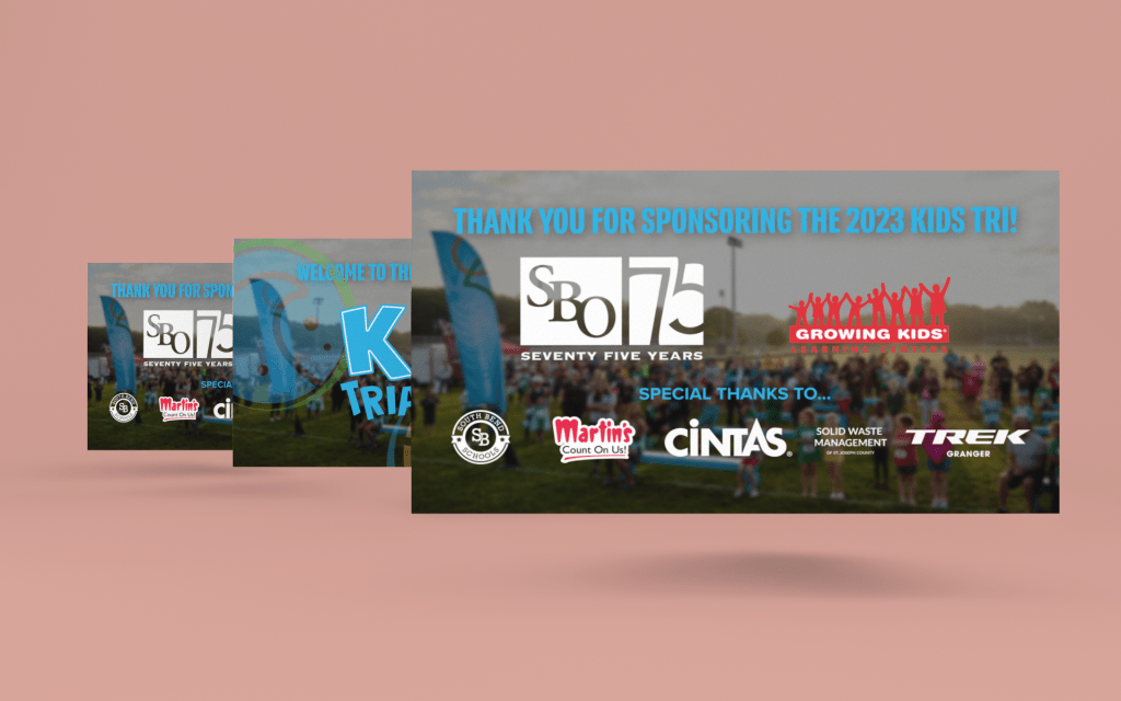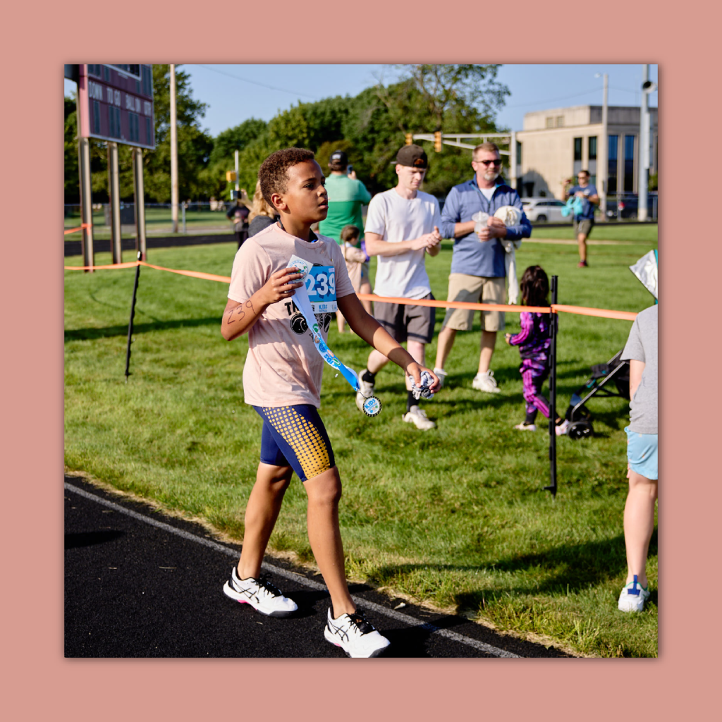 The dream for this year’s Kids Triathlon was to elevate! This was accomplished by focusing on details that would improve the customer’s experience. Pictured first is a great example of this. Customized race bibs, medals, and t-shirts may seem insignificant in the planning stages, but even small details end up meaning a lot and looking really great in recap photos.