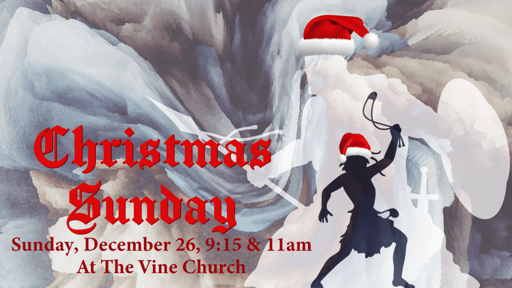 Giant Slayers was a sermon series to share the stories of people in the Bible who accomplished “big things.” The Bible Character David is pictured hurling a stone at Goliath. The opacity in the characters is lowered to emphasize the movement in the background image. The lead pastor wanted to have the series continue for Christmas. To make it more “Christmasy,” I added Santa hats on David and Goliath. The third design was printed and posted on bathroom stalls to advertise scheduled events.